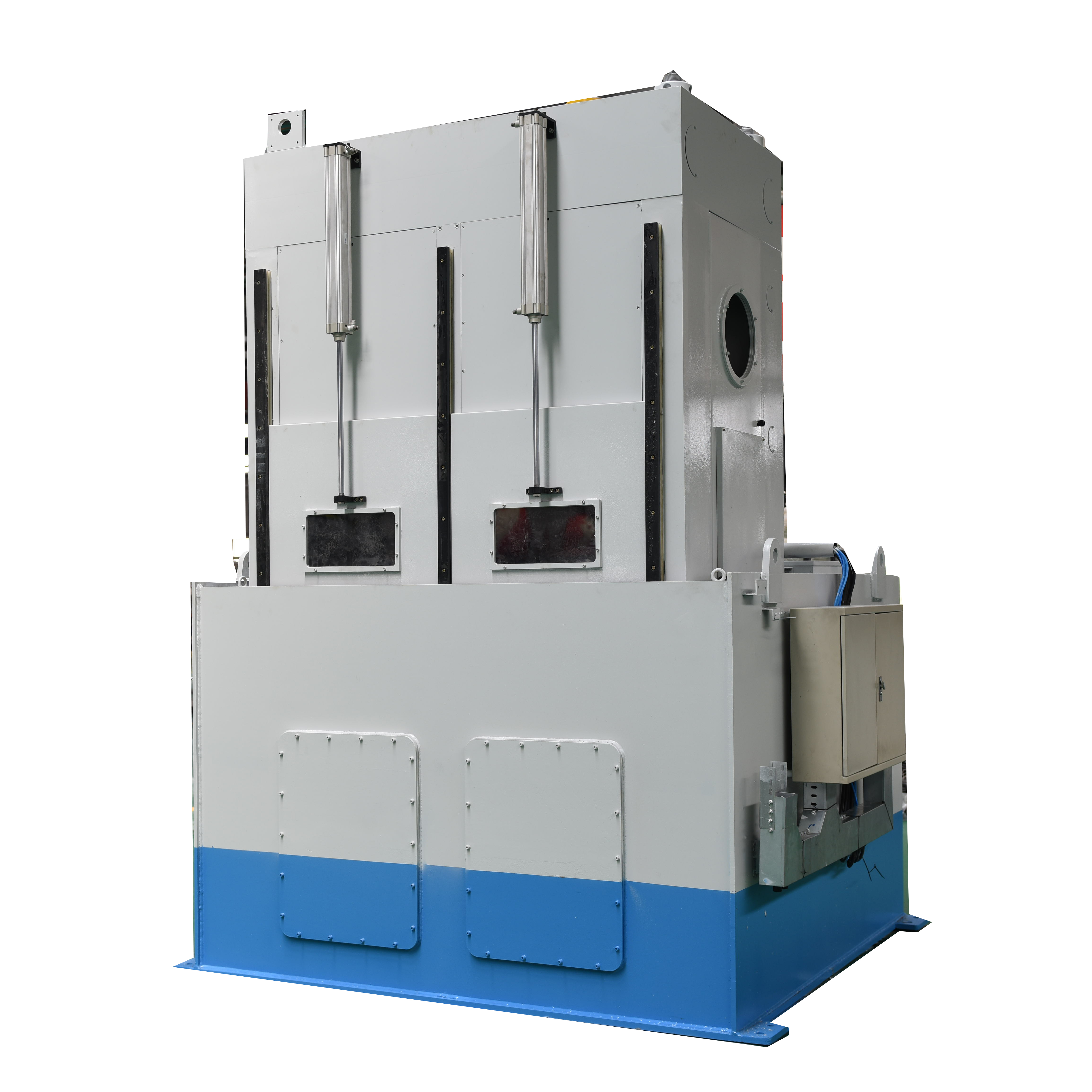 ZCJ-2G-400型二工位軸承淬火壓床,是用于滲碳鋼軸承內外套圈進行二次淬火的專用設備。該設備與加熱爐配套使用,零件通過二次加熱后迅速轉移至淬火壓床實施急速冷卻,并在模具的限形作用下,有效阻止零件的漲縮,減小零件形變和畸變,從而使工件尺寸保持一致性和重復性,以達到控制軸承的熱處理畸變和提升熱處理質量的目的。淬火工件包括:單錐外圈、單錐內圈、雙錐外圈、雙錐內圈以及圓柱內外圈等。壓床可進行自動/手動操作,PLC程序控制。